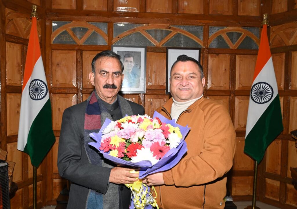 शिमला। नव नियुक्त कांग्रेस प्रदेशाध्यक्ष विनय कुमार ने मुख्यमंत्री ठाकुर सुखविंदर सिंह से उनके सरकारी आवास ओक ओवर में शिष्टाचार भेंट की।