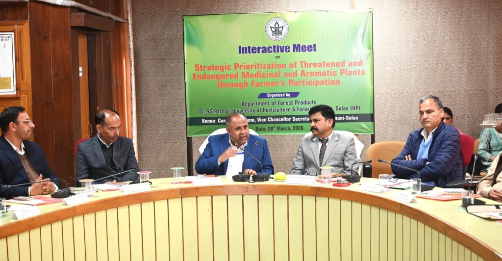 सोलन. किसान सहभागिता के माध्यम से विलुप्तप्राय एवं संकटग्रस्त औषधीय एवं सुगंधित पौधों (MAPs) के रणनीतिक प्राथमिकता निर्धारण” विषय पर एक इंटरएक्टिव बैठक का आयोजन डॉ. यशवंत सिंह परमार औद्यानिकी एवं वानिकी विश्वविद्यालय, नौणी में राज्य वन विभाग के सहयोग से किया गया। वन उत्पाद विभाग द्वारा आयोजित इस कार्यक्रम में वैज्ञानिकों, शोधार्थियों, वन अधिकारियों तथा प्रगतिशील किसानों ने भाग लेकर हिमाचल प्रदेश में औषधीय एवं सुगंधित पौधों के संरक्षण, खेती और सतत उपयोग पर मंथन किया।