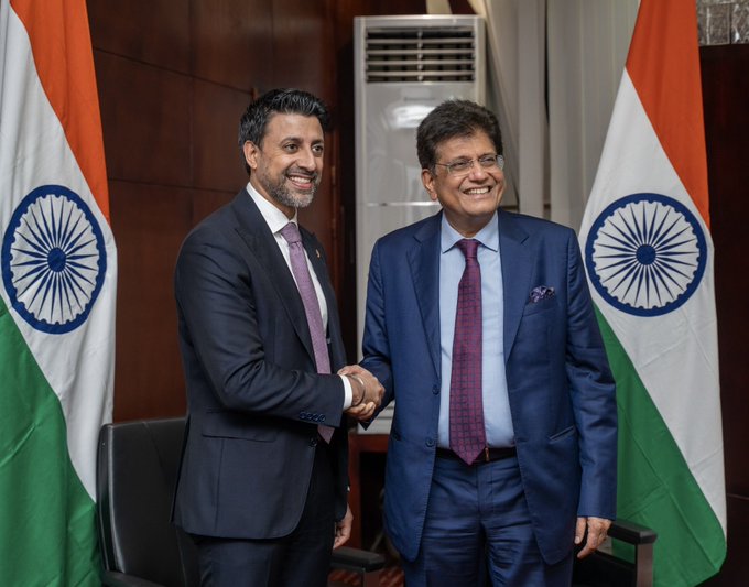 नई दिल्ली। कैमरून के याउंडे में आयोजित डब्ल्यूटीओ के 14वें मंत्रिस्तरीय सम्मेलन के दौरान वाणिज्य एवं उद्योग मंत्री पीयूष गोयल ने कनाडा के अंतर्राष्ट्रीय व्यापार मंत्री मनिंदर सिद्धू के साथ द्विपक्षीय बैठक की। दोनों पक्षों के बीच यह चर्चा हाल ही में शुरू हुई भारत-कनाडा सीईपीए बातचीत में तेज़ी लाने पर केंद्रित रही।